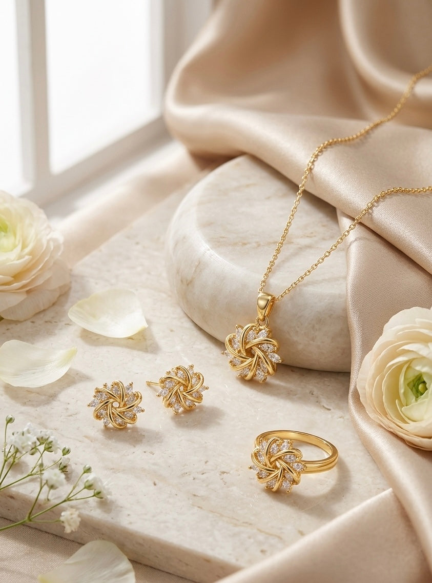 Discover our exquisite collection of handcrafted pieces, each designed to capture light and elegance. From our stunning necklace collection to our radiant earrings, bracelets, and our prestigious bridal collection, every piece in our curated selection embodies timeless sophistication and unparalleled craftsmanship.